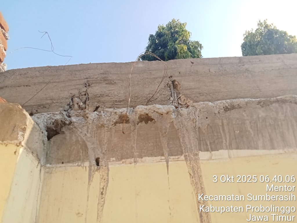 - Cor reng slop atas, tulangan besi terlihat keluar sehingga berpotensi keropos.