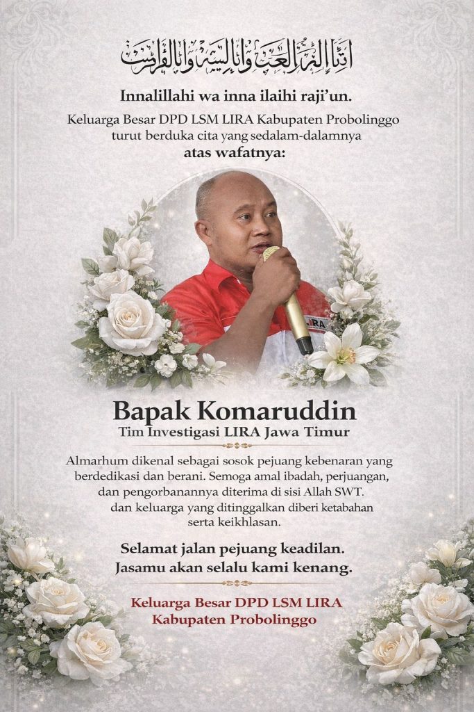 Keluarga besar Perisaihukum.com tengah berduka. Saudara Qomar udin tercinta dari Ketua Tim Investigasi Jawa Timur telah berpulang ke rahmatullah.