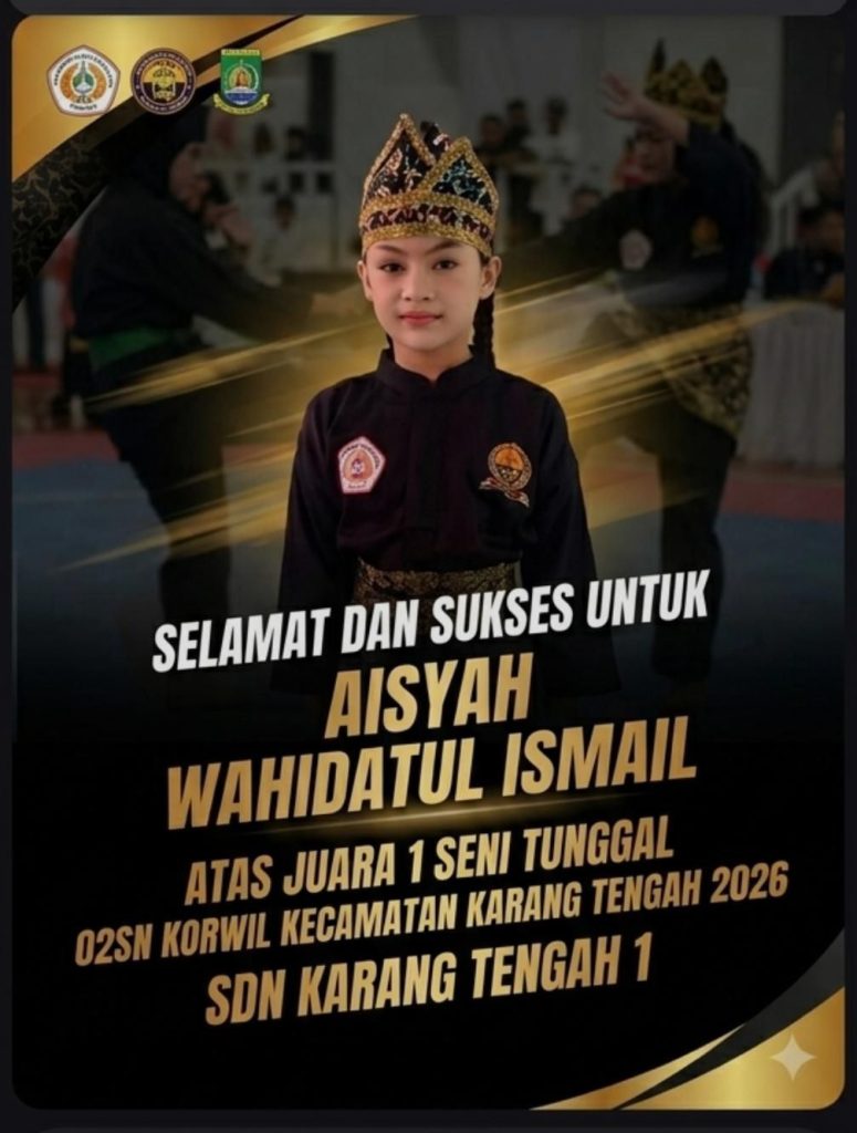 Prestasi membanggakan kembali ditorehkan oleh dunia pendidikan di Kota Tangerang. Siswi berbakat, Aisyah Wahidatul Ismail, berhasil meraih Juara 1 cabang Seni Tunggal dalam ajang Olimpiade Olahraga Siswa Nasional (O2SN) Korwil Kecamatan Karang Tengah Tahun 2026.