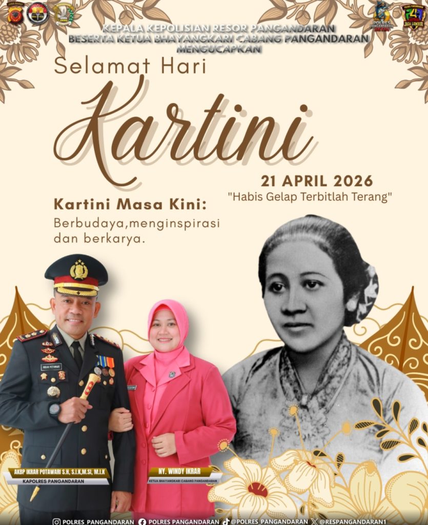 Dalam rangka memperingati Hari Kartini yang jatuh pada 21 April 2026, Kapolres Pangandaran, AKBP IKRAR POTAWARI, SH , S.I.K, M.SI, M.I.K menyampaikan ucapan selamat sekaligus apresiasi kepada seluruh perempuan Indonesia atas kontribusi dan peran strategisnya dalam berbagai bidang kehidupan.