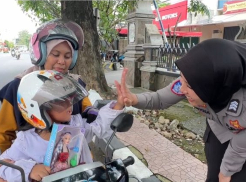 Petugas menemukan sejumlah anak yang sudah patuh terhadap aturan keselamatan berkendara. Sebagai bentuk penghargaan, mereka diberikan hadiah berupa mainan untuk memotivasi agar kebiasaan baik tersebut terus dipertahankan.
